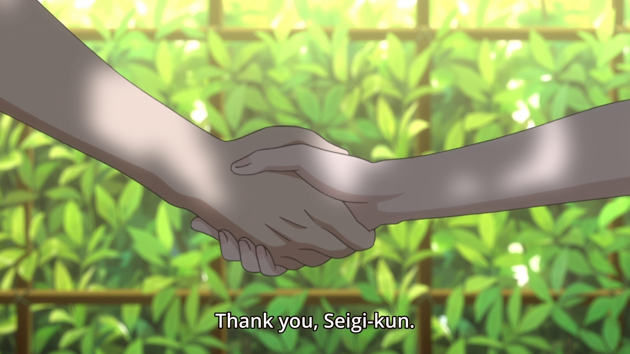 — Nevertheless, Seigi wants to be the good guy so he supports her. He’s so desperately afraid of coming off as selfish, so he tells her this story about how his mom remarried not out of love but for him. And somehow that’s a good thing. And like that, these two shake on it. What frustrating people…