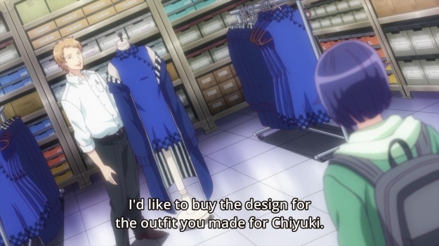— At first, it seems as though Toh is gonna be a nice guy. He’ll take Ikuto on full-time and help with the hospital bills. Wow, what a swell guy! But then the truth comes out: he doesn’t see Ikuto as a fashion designer at all. He just wants the kid’s talent in pattern-making. In Toh’s universe, not only is he the leading man, everyone else is just a cog in the machine to help prop him up. Y’know, there’s truly something broken in you if you try to emotionally manipulate someone when their mother is in the hospital.