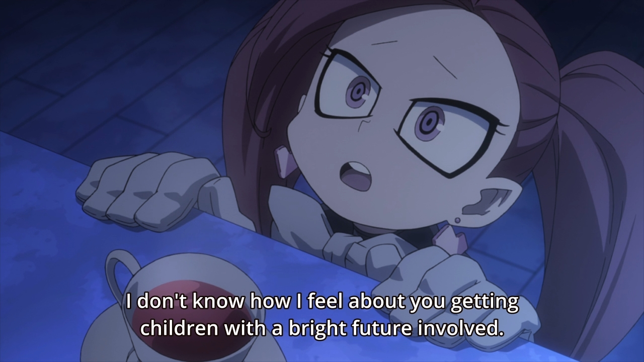Alright, let’s talk about that movie. I’m going to spoil major plot points, so obviously don’t read it if you care about that. My initial plan was to put up a separate post just for Heroes Rising, but by the end of the film, I realized I couldn’t. I realized that I just don’t have that much to say about it. First off, I can rattle off the obvious positives. Great animation for the action scenes as usual. It’s also nice to see Class 1-A work together as a team. These scenes, however, do strongly emphasize how the girls don’t have Quirks that allow them to engage in intense combat. So as always, Deku, Bakugo and Todoroki get the final hits in… along with bird man, I suppose. But I digress. Moving along, I went with a non-anime fan who knew nothing about the series as a whole, but the cast was nevertheless charming enough to amuse her. And finally, it’s good to see that Bakugo can “lower himself down” and work with Deku. I’ll never understand how he consistently tops the popularity polls, but on the bright side, he won’t become a Vegeta.
