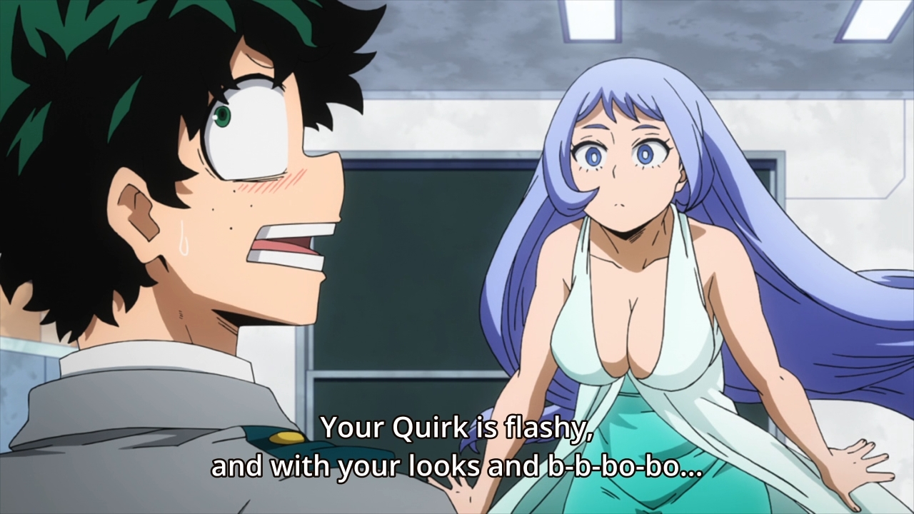 — There’s not much to discuss here. Deku’s gonna get a new support item from Mei and their interactions always kinda amuse me. But other than that, All Might warns the kid not to rely too much on items. You might lose your form or something…
