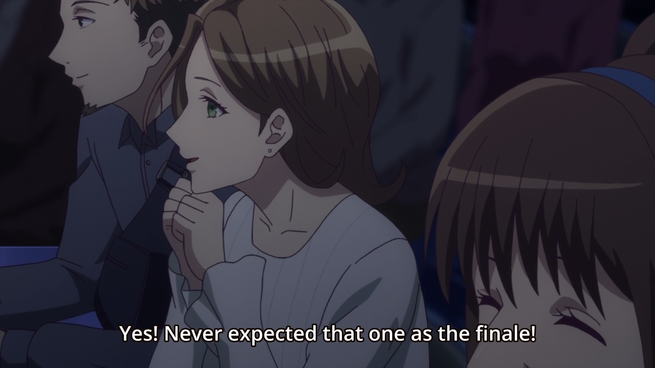 — Oh well, we got to watch Yuriko cheer for her son from the sidelines. In a way, her tears of happiness — and the fact that she can even stand here and watch her son compete — is a victory in its own right. When Ikuto loses — and I’m pretty sure of this — his family will be there to pick him up. And maybe Chiyuki as well.