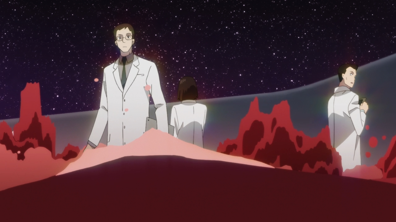 — Meanwhile, Togo and her team initially find themselves in a tranquil world, but they are soon chased by boulders. Alright, I guess we’re in an Indiana Jones movie, now. It’s probably random where you end up. In any case, the purpose of this scene is to explain to the viewers that if you die in the dream world, you’ll just fall into a coma. I sound flippant, but I mean, we’re clearly headed in a direction where our two brilliant detectives (plus Momoki) will find a way to save everyone. I don’t expect ID INVADED to have a super downer ending like, say, Babylon (just the first mystery anime series to pop into my head).