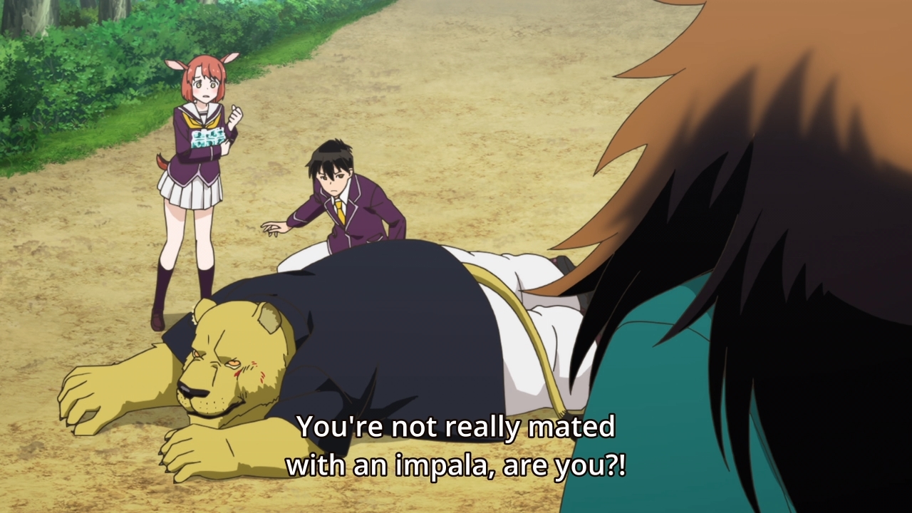 — At first, King gets his butt kicked ’cause we’re following shounen convention. Shiho, the impala, tries to defend King, but she gets smacked around. As a result, King goes SSJ. It’s just like when Frieza killed Krillin.