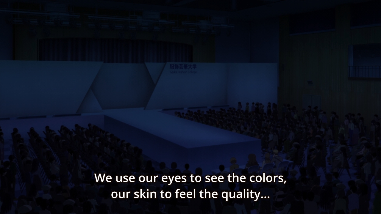— Right at the start of the episode, we learn what Toh is trying to accomplish. When his grandmother was a student, she got fifty-two inquiries from buyers after a competition. She wants her grandson to try and break that record. This is only fitting. Why would Toh be competing against younger students? Why would Toh be competing against amateurs when he’s trying to launch his own brand? His only real competition has been the woman he’s been looking up to since he started taking an interest in fashion design. In a way, you can almost say it’s arrogant of Ikuto to think that he can beat Toh. Sure, sure, I get it. The latter told him that he had no talent, so our dopey hero has to try and prove his doubter wrong. But let’s be honest… let’s be brutally honest: if a high schooler — not even an actual student from a design school — could beat Toh, then he should hang up his… uh, sewing needle? Well, you get my point.