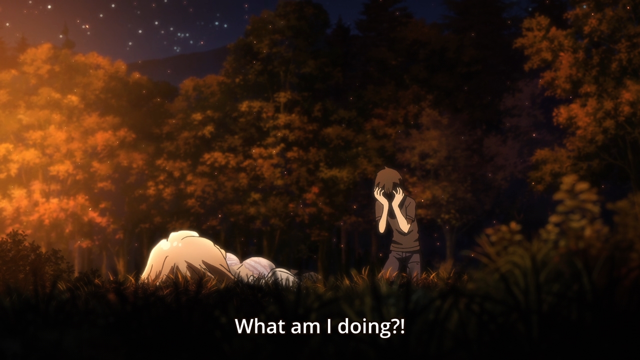 This is another romcom harem anime, but for what it’s worth, it is slightly pervier than its peers. If you watched the first season, then you already know that Kiriha likes to jerk Kazuya off regularly, and of course, he totally never wants one. Uh-huh. You might like this show if you have a preference for sexually-tinged absurdity, and I’m not even talking about the handjobs. At one point in this episode, Kazuya does battle against his childhood friend’s childhood panties. Apparently, it has gotten lonely over the years, so it has been stealing other girls’ panties in order to keep itself company. Yeah. So how does our dork of a hero solve this panty-thieving conundrum? By sacrificing his own underwear for the greater good of society! Then together, his childhood friend’s panties and his underwear float up into the sky while transcendent music plays in the background. The sun even shines down them with moral approval. Finally, we see the two pieces of underwear drift off into outer space where perhaps it’ll make first contact with a very confused alien race. Did this entire sequence make me bust a gut laughing? No. But it might amuse you, so knock yourself out.
