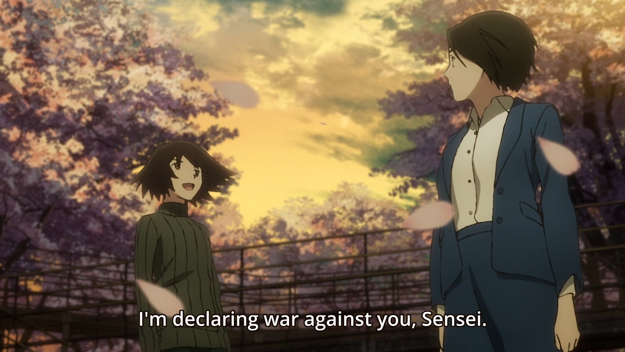 There’s one other thing I want to bring up. Midway through the episode, Shinako tells Rikuo that she can’t return his feelings. As a result, she just wants them to stay friends. For the rest of the episode, he mentally grapples with this request. He even wonders if men and women can truly be just friends (of course they can). He ultimately decides that he can’t honor her wishes. For both his and her sake, they should stop being friends for now. If he had come to this conclusion towards the end of the series, I would’ve been inclined to believe him. But it’s the second episode, so it’s a bald-faced lie. If Rikuo ever manages to decide between Haru and Shinako — and I can’t believe a teenager is even in the equation — it won’t come until the very end of the story. And like most wishy-washy protagonist, he will probably have to learn his lessons the hard way. There’s a good chance that Rikuo and Shinako will enter some sort of relationship at some point only for him to realize that she can never truly love him back. And once he finally burns his hand on the stove, he’ll probably go running for that manic pixie dream teenager like the mangaka always intended!