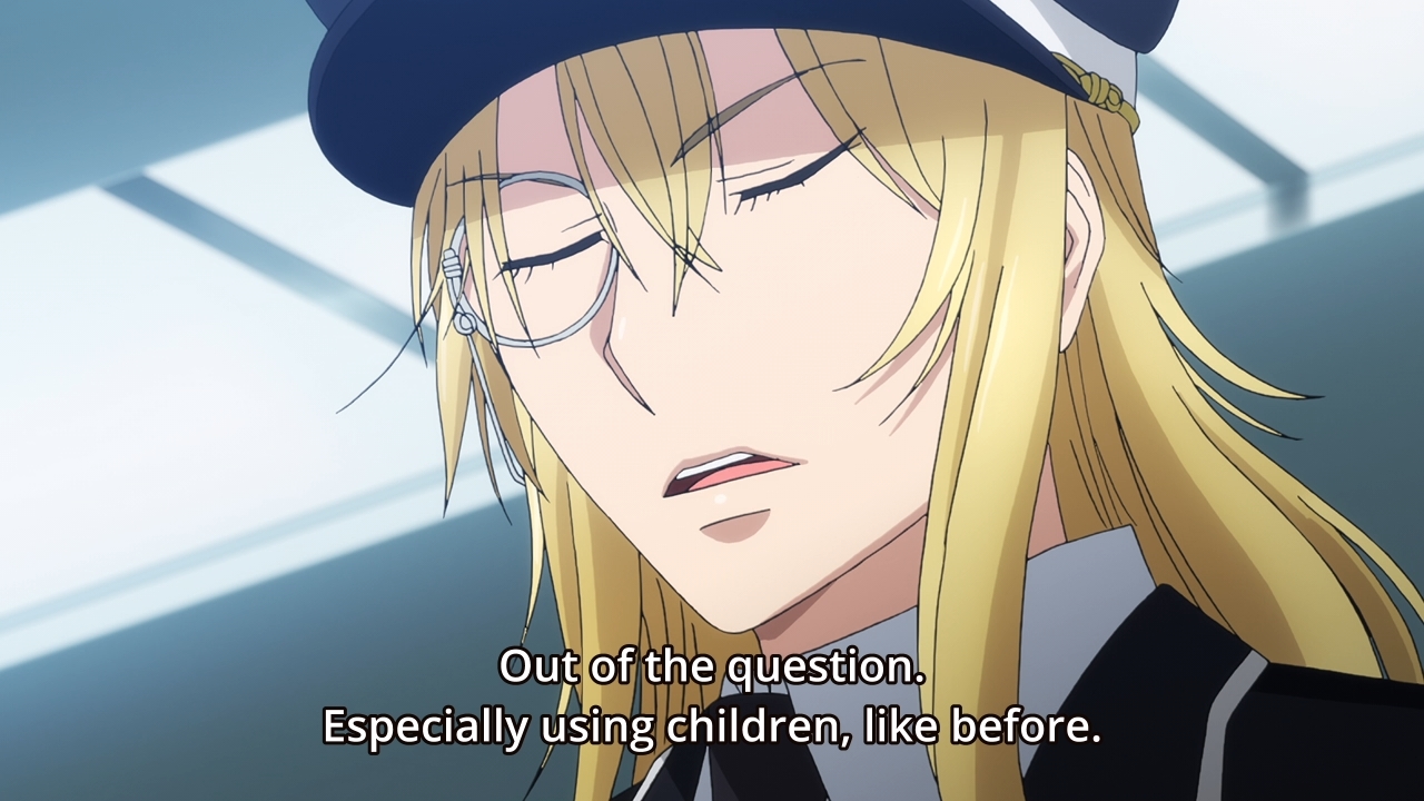 — Anyways, Schmelman quickly shows up and proposes a pipe dream: Class A can become an army that doesn’t have to kill. Really? How?! Y’see, if you become super duper strong, no one would dare pick a fight with you! It’s that easy! And just like that, Class A shows their collective naivete by going, “Hell yeah! Let’s become super strong so we never have to kill!” Too bad the audience already know for a fact that Licht ends up becoming an Ace with a body count in the millions.