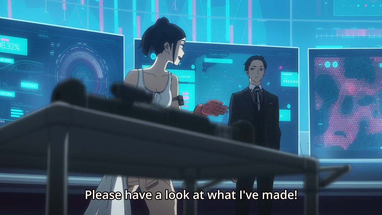 — The woman then introduces herself as Suzue Kembe, so unfortunately, she’s no Irene Adler… as far as we know. So she and Daisuke are siblings? Cousins? I mean, they’re probably not a husband-and-wife duo, but I could be wrong. In any case, I guess this explains why he looked away earlier. No one wants to see a family member doing stuff with some sketchy dude in a car. That aside, what is with this family? When did they decide to solve crime? Do they care about society or are they just bored? Not only that, Suzue appears to be multi-talented. Not only can she play an undercover agent, she can do maintenance work and invent new gadgets for Daisuke to play with. I wouldn’t be surprised if they later claim that she put this fancy hideout together.