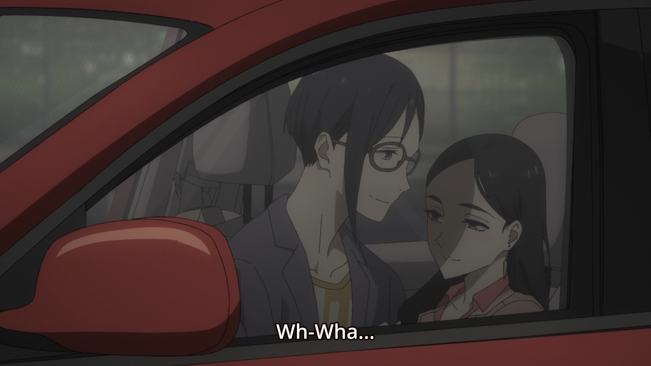 — We even bump into the black-haired woman from the OP. Immediately, Haru is smitten. Too bad he can’t seem to handle the fact that women can also have relations. Curiously enough, during this scene, Daisuke looks away. I guess this makes sense when we find out more about the woman’s identity later.