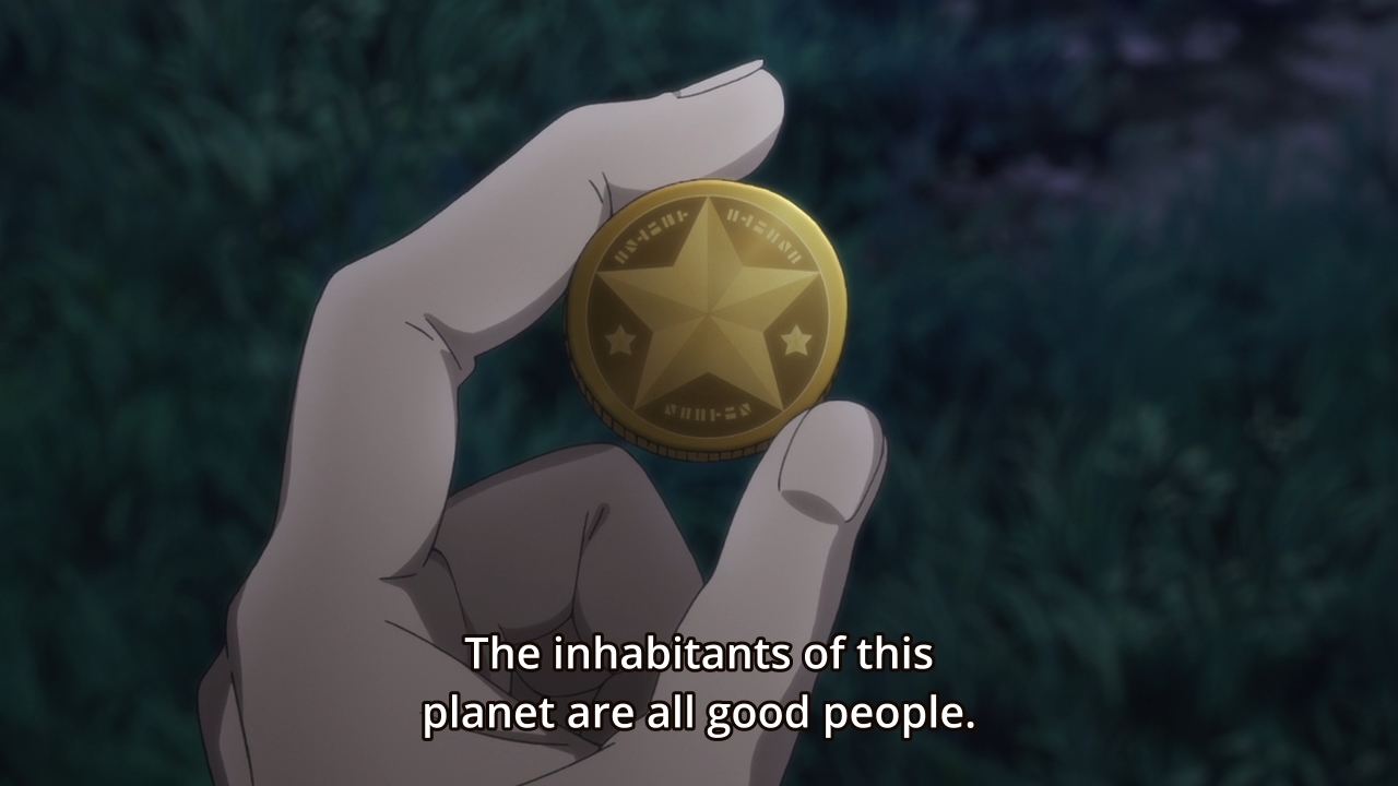 — In the cold opening, vending machine man refers to humans as “inhabitants of this planet.” Welp, I guess that makes him an alien. Considering how he completely relies on us humans to find his coins, however, I wonder why the wishes he grants have so many hidden drawbacks. Maybe he can’t help it. Maybe people turning into beasts is a side effect of their true nature or something. I’m just saying that it seems counter-intuitive to screw people over when you need their help. Hell, he even claims to like humans. Then again… maybe he does need to screw them over. If people like Hikawa had gotten everything she wanted, she wouldn’t need to look for more coins.