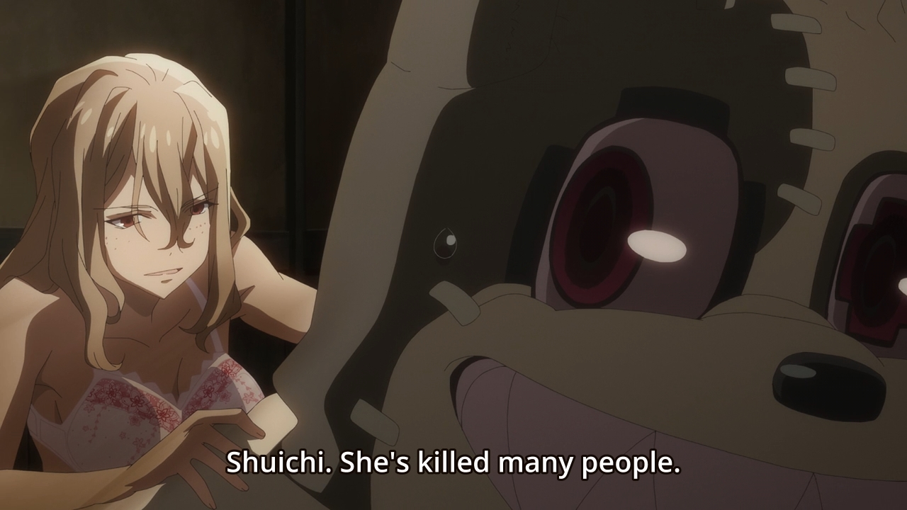 — More importantly, how well does Elena know Shuichi? Did she simply stalk him from afar or did they use to have a history? The only problem with the latter is that he doesn’t seem to remember anything about Elena. He should recognize her if they’ve ever crossed paths… unless, of course, his memories have somehow been tampered with. Anime loves that shit. And considering how vending machine man can grant wishes, maybe he can also erase memories. Still, if Elena was involved with Shuichi, it’s interesting that Clair appears to have no clue about their relationship at all. Well, people will always have their secrets…