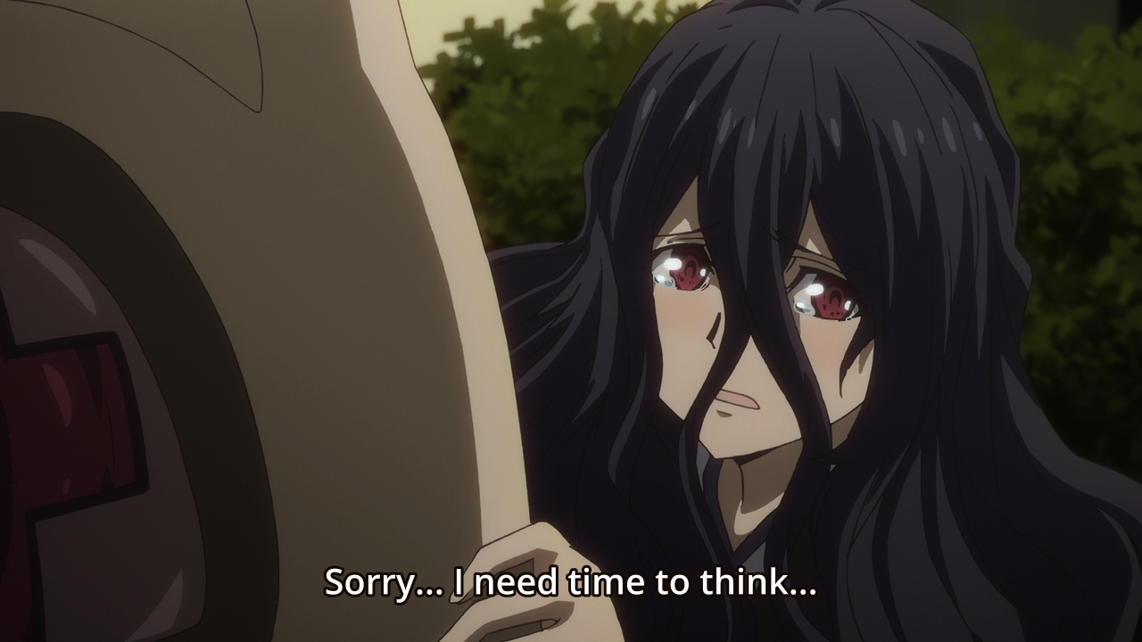 — All of a sudden, Elena does show up. Her smell is unmistakable, and Clair doesn’t hesitate. She wants to shoot her sister to prevent her sister from getting away. Cold, right? But again, it’s probably a defense mechanism. Shuichi feels as though Clair is burying her feelings. When she sheds tears at the last second, he overrides her and probably prevents Elena from being killed. The bullet just narrowly misses. Still, I wonder what it would have meant for the rest of the series if Clair had gotten her way. I thought she wanted to know why her sister killed their parents, but all she sees is red right now.