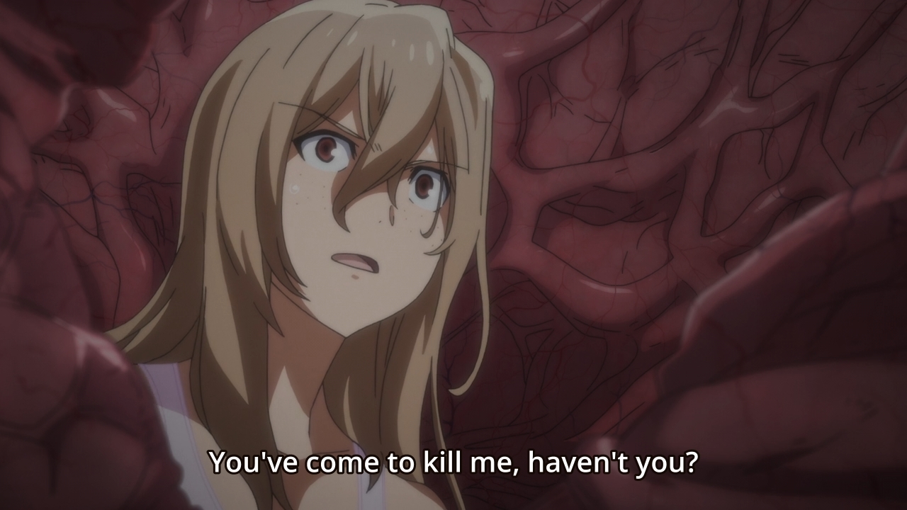 — When Clair expresses confusion, Elena goes into a rage. She transforms back into her shadowy form. She proceeds to rip off Shuichi’s head while simultaneously declaring that she’s the only person who is allowed to be inside him. Welp, that’s our cliffhanger.