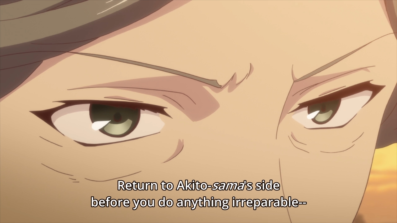 — He tries to give her some flowers, but she immediately knocks it to the ground. Wow, rude much? She then tells Haru that she’s tired of him. Again, knowing this show, she’s probably just trying to protect him. Remember: parents bad, kids good. Have you met an evil young person yet? Besides, of course, Akito, but considering how she rules this family with an iron fist, she’s kinda like their parent anyway.