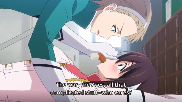 — Ultimately, it’s up to Hina to save the day. She can’t stop the operation anymore. It’s too late for that. But even if Licht becomes an Ace, she argues that they can stop him from becoming the Ace that murders millions of people. All of a sudden, Jail shows up and agrees with her. Yup yup, we can totally try this! See, this is bizarre to me. Alcia only comes about if one side wins the war and fucks off with all the resources. You’ll still create a horrible solution where the victors get to run off and live in their magical fantasy land in the sky while everyone else suffers in the Abyss. But hey, as long as we get to protect Licht and our own people, who cares about the rest of the world, right?