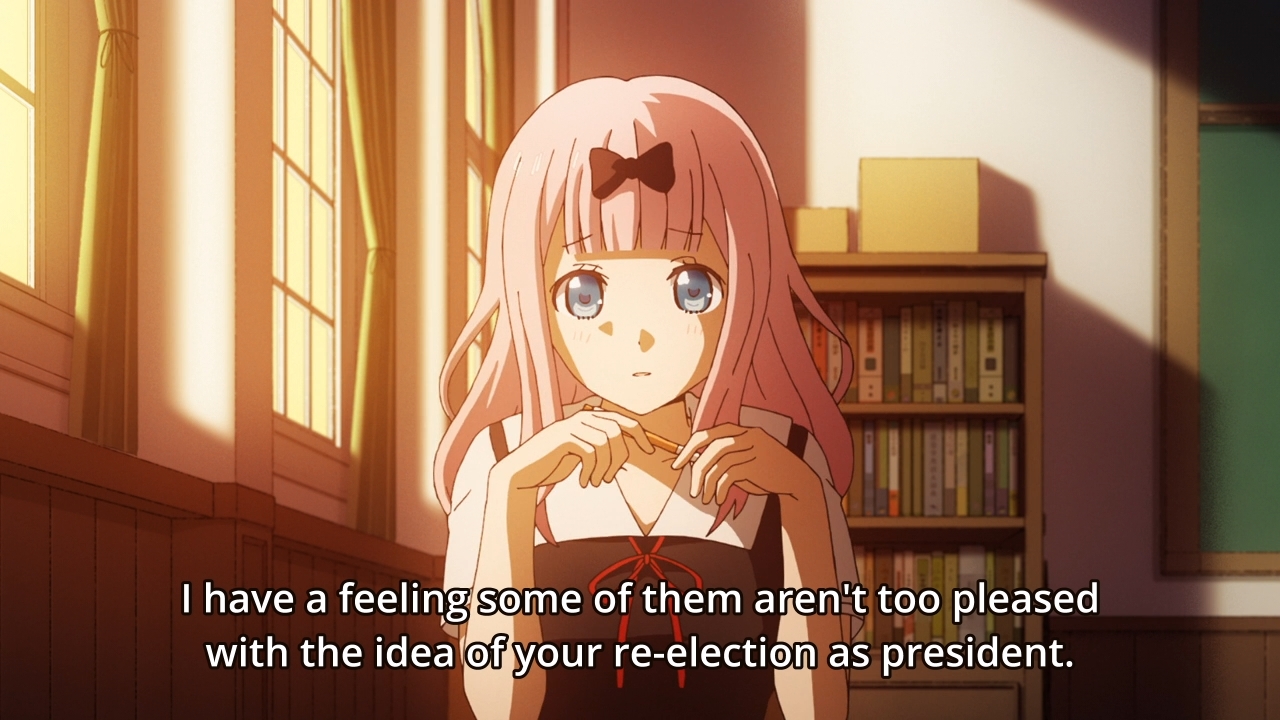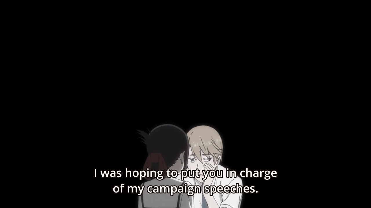 — In the final third of the episode, Miyuki is the obvious frontrunner for the upcoming election. Unfortunately, he’s just as insecure as Kaguya.