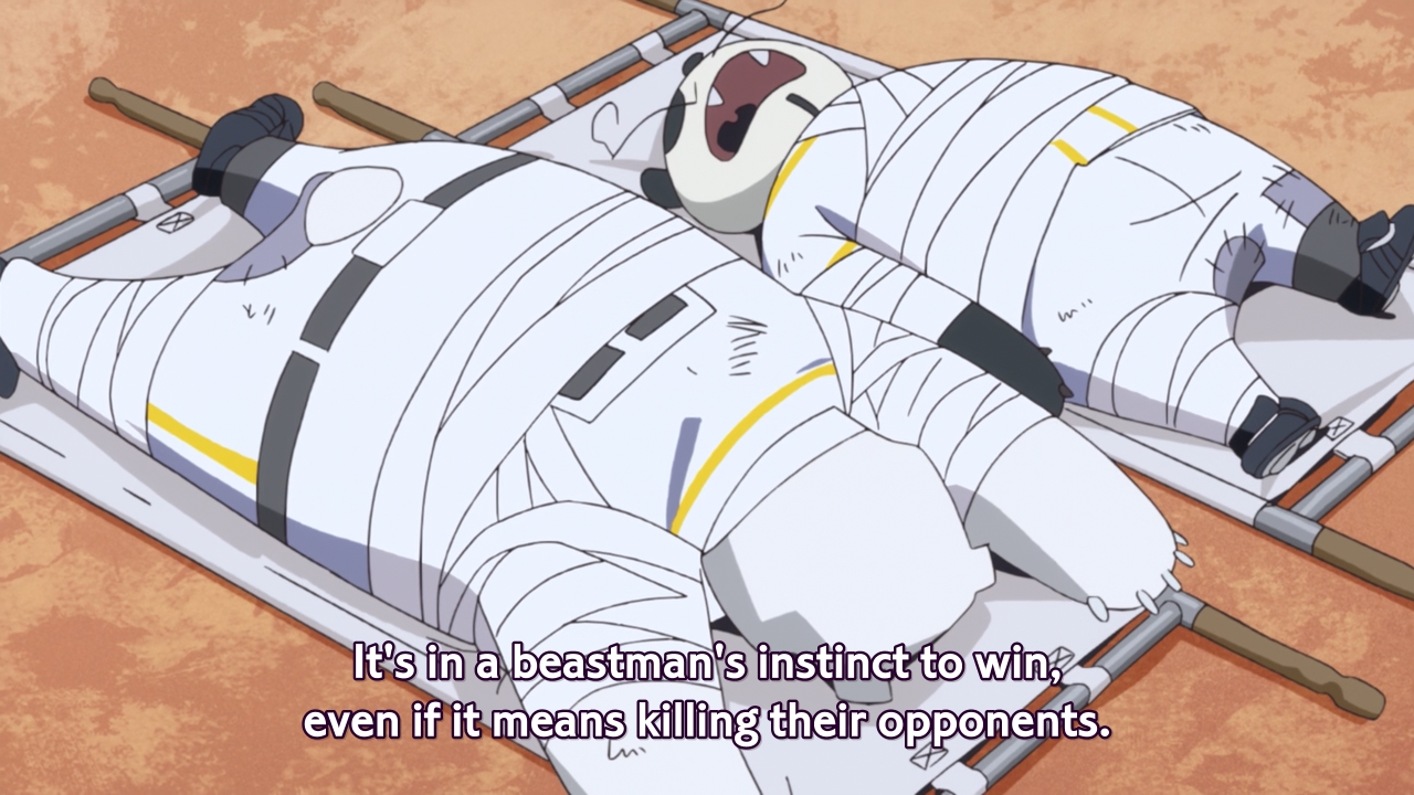 — We get a flashback about how the coach was the first beastman to ever join a pro baseball team with human players. He’s kinda like the Jackie Robinson for beastman kind. Unfortunately, he snapped one day due to all the discrimination, so he either murdered his fellow players or seriously injured them. Yeah, I don’t think Jackie ever did that.