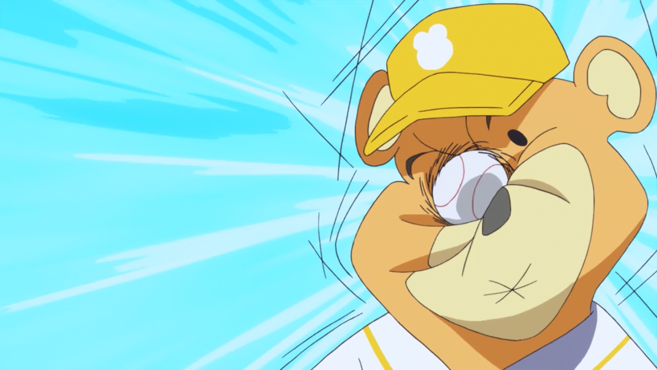 — Winnie the Pooh dies to a liner that hits him in the face — no, I’m not making up the Winnie the Pooh thing — so Michiru gets roped into filling in for the Bears. With all of her “natural” talents, she carries the massive underdogs to victory.