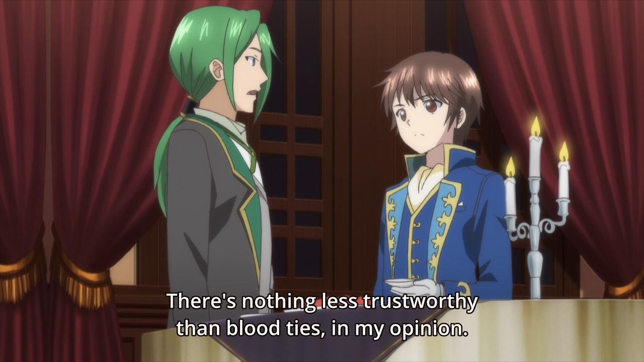 — Roderich delivers his report and more! He counters rumors of Wendelin’s death with another rumor. Well, is it really a rumor if it’s true? Either way, the evil mastermind is now under investigation. They doubt he’ll be punished, but at least he’ll be off Wendelin’s back for a while. More importantly, Rorderich reveals that he’s actually Ruckner’s illegitimate son. It’s all connected!