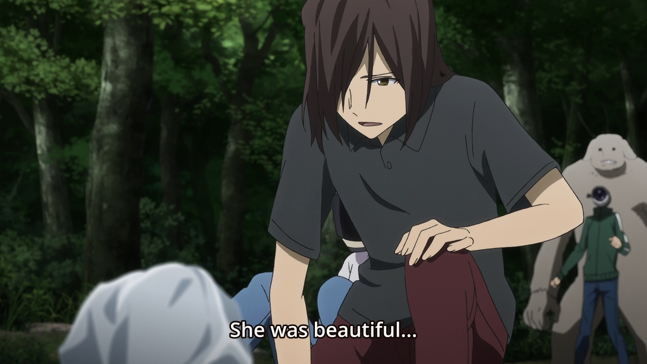— This is already the ninth episode, so we’re coming up against the end of the first season. I wonder how it’s gonna wrap itself up. If the climax is simply overcoming the ape and escaping from the mountain with their lives, then I dunno… that seems kinda weak. Needless to say, we’re not even close to unraveling the mystery behind everything. What is Elena’s group really up to? Why did Elena erase Shuichi’s memories? What are the Alien’s true intentions? And most of all, I really just want to see how Shuichi and Clair develop as characters. Everyone else isn’t really that interesting to me.