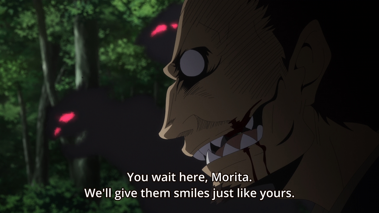 — He thus transforms into his monster self — a rather boring ape — and immediately catches up to Shuichi/Clair and friends. Without any warning, Isao goes down. Yota tries to retaliate, but his punch doesn’t even phase the ape. Welp, if Yota can’t do anything, I doubt Shuichi/Clair can do much either. If the good guys wanna get out of this mess, they’re gonna have to resort to those wits that Sayaka had previously talked up. For her friends’ sake, let’s hope that she was right.