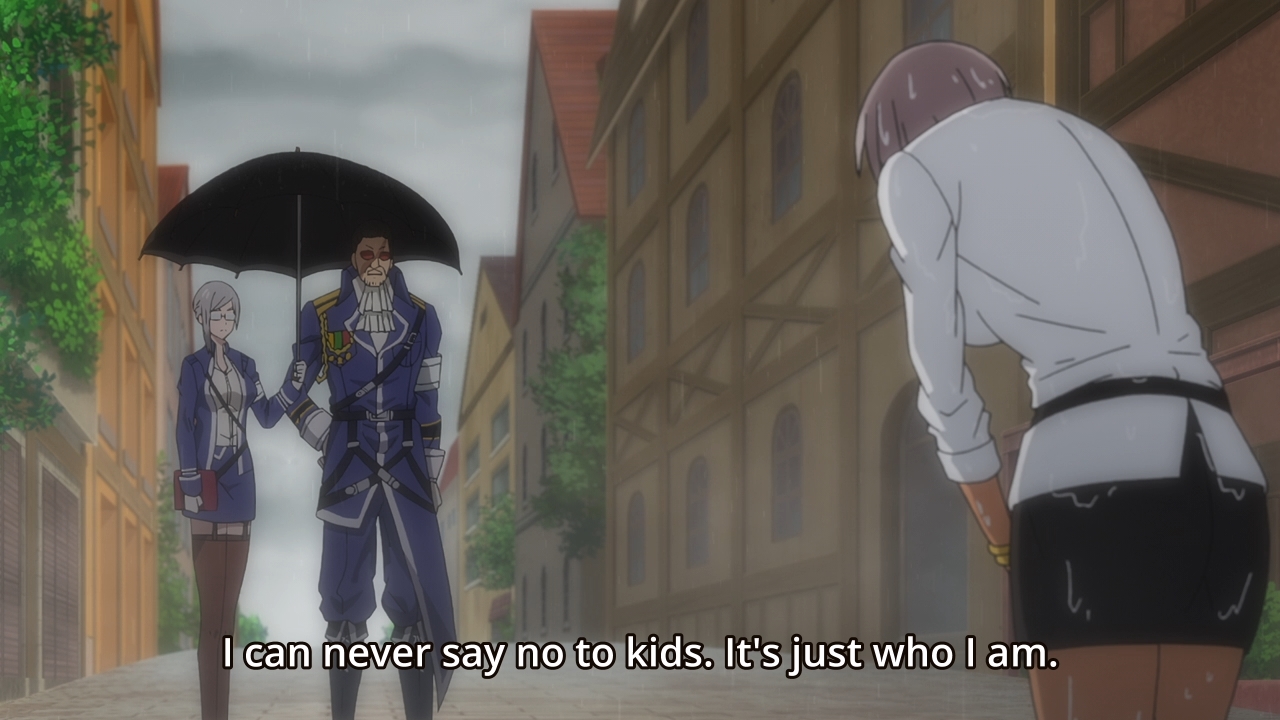 — Alexandrov actually has flames on his shades. I guess he takes fashion tips from Guy Fieri. Anyways, he tells Jail that the kid no longer has to worry about how they broke the law by attacking the Althing episodes ago. Why? ‘Cause Nana somehow went to the city and begged for mercy? Forgiveness? Who knows… she must’ve done it while everyone was in the past. Nevertheless, if it is this easy to overlook a crime, I’m not sure why Alexandrov didn’t just do this in the first place for his son.