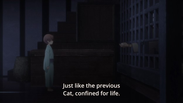 — On the plus side — if you can really consider this to be a positive — Akito gives Tohru the info that none of the other Sohmas would volunteer. Our heroine now knows that the Zodiacs will eventually go and live with Akito. Not only that, Kyo will be imprisoned as the scapegoat that they want him to be. Now that Tohru has this information, she can obviously try and do something about it.