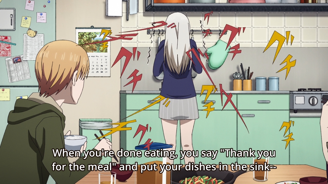 — Kei wants to ask about Miyuki’s girl troubles, but she also doesn’t want him to think that she cares. So naturally, she gets nothing out of him. It’s too bad, because she’s the only one here who can give him a young schoolgirl’s perspective. On the other hand, their father has an odd ability to get people to talk to him. Too bad he doesn’t actually have any decent advice to give.