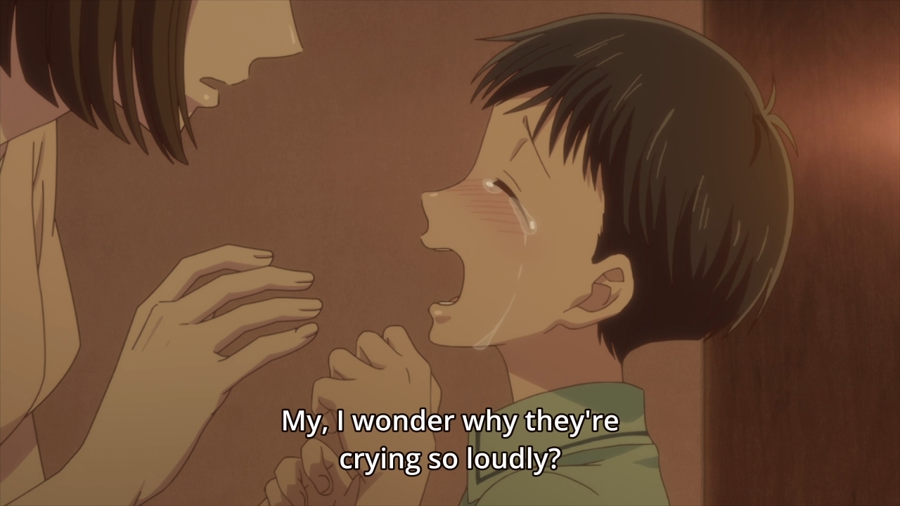 — Welp, outta nowhere, Mayuko starts loudly bawling. In public. In front of everyone. Like with most scenarios that play out in Fruits Basket, I kinda get it and I don’t? I would never get this emotional with someone I haven’t seen for two years. But at the same time, I’m not Mayuko. If I have been suppressing my true feelings for the past two years… and if I am still holding a torch for someone whom I was never in a relationship with… then I guess I might react the same way?