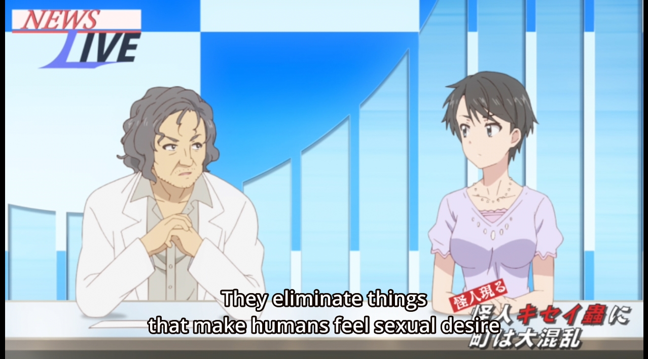 I’m trying to imagine what I’d rather watch. Maybe a comedy built on cringe humor. Maybe an earnest show about an awkward 20 or 30-year-old virgin who has only known the touch of his right hand, but he’s now trying to break out of his shell and become intimate with actual people. And along the way, we get to see his various mishaps. Like a Michael Scott trying desperately to get laid in modern Japan. Well, that wouldn’t work. That’s too adult. After all, this show is adapted from a manga that originated in Jump Square; it’s literally for kids.