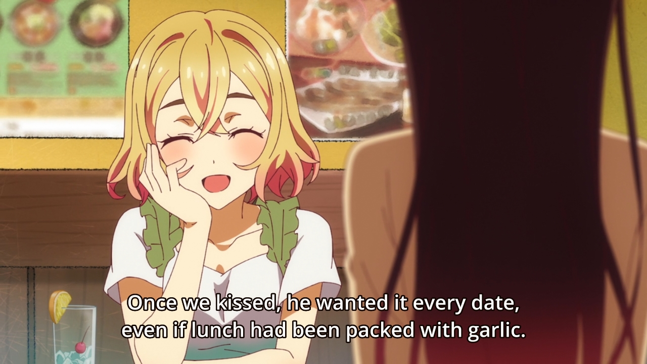 — His friends invite him to a drinking party, and even though Chizuru is shaking her head at him, he agrees to it anyway. He could’ve easily said that he and his “girlfriend” already had plans, but he didn’t. Hell, she could’ve done that too. She could’ve just reminded him that they already have dinner reservations or whatever. But neither of them are very good at thinking on their feet, so off to the drinking party we go!