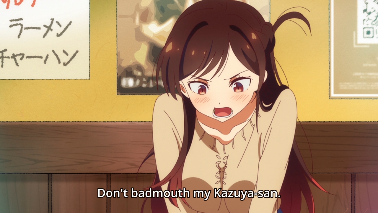 — Chizuru has to play the role of a proper girlfriend, so she comes to Kazuya’s defense. But even if she wasn’t a good actor, she probably would’ve spoken up anyways. This episode firmly establishes the fact that the girl is compelled to protect people even if they don’t deserve her kindness.