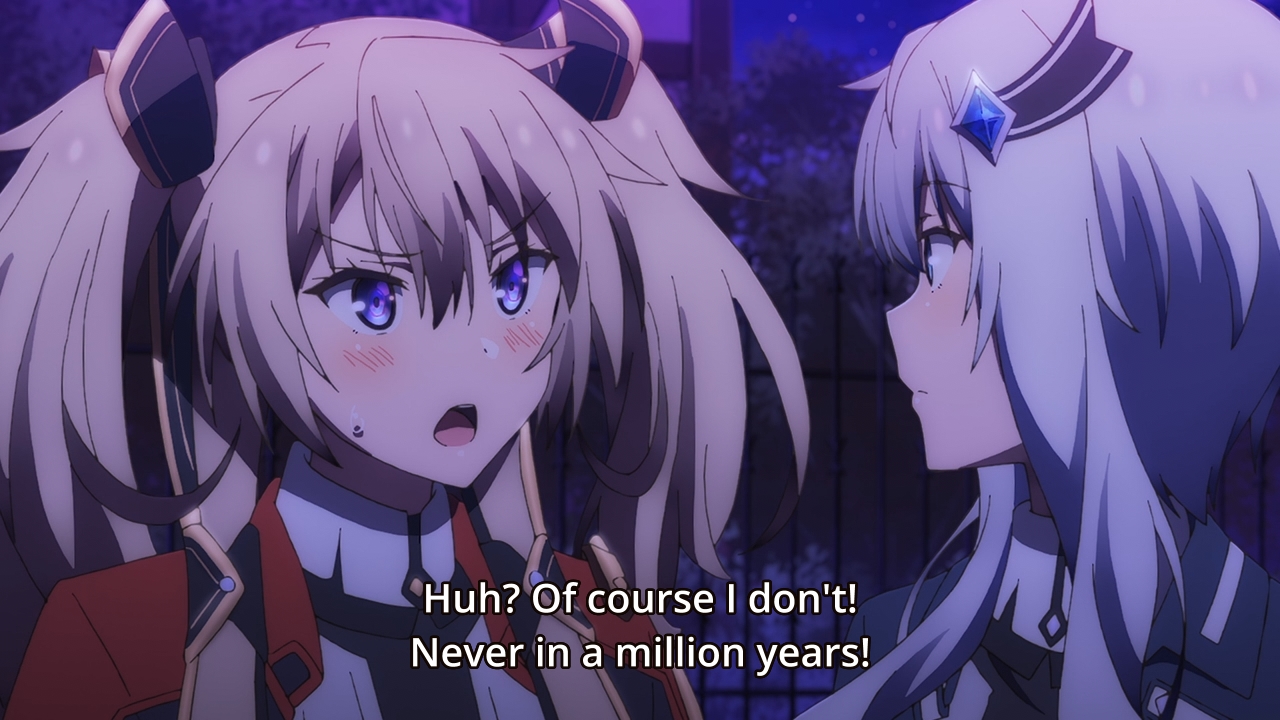 — Plus, all of the promo stuff firmly establishes Sasha as the other heroine, so even as a viewer going into this series blind (after all, I would never willingly read a light novel), there’s no reason for me to believe that the girl is actual evil. I have to imagine that she has to hate her sister or something bad will happen. I don’t know what, but you know how lame these anime twists are. In any case, my point is that the story pretty spoiled itself.