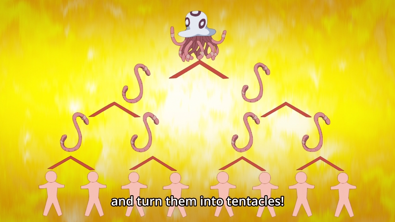 — And one of those tentacles just happens to be Ret. Yup. That’s the bad guy’s power. She can turn people into tentacles, then those tentacles will turn more people into tentacles. It’s like a tentacle rape pyramid scheme.