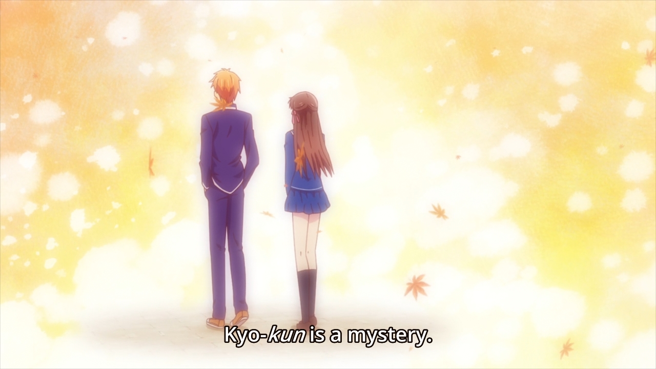 — On the other hand, Kyo of all people gets a confession! Who on earth would like him? Okay, sure, Tohru would, but she’s an anomaly; he’s actually nice to her! With everyone else, however, Kyo’s a total brat. I mean, look at him! Kyo doesn’t have to date this girl, but there’s no reason to be such a dick about it. But hey, some people out there like that sort of thing, and maybe that’s why this random girl is attracted to Kyo in the first place.