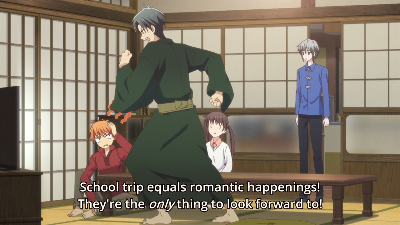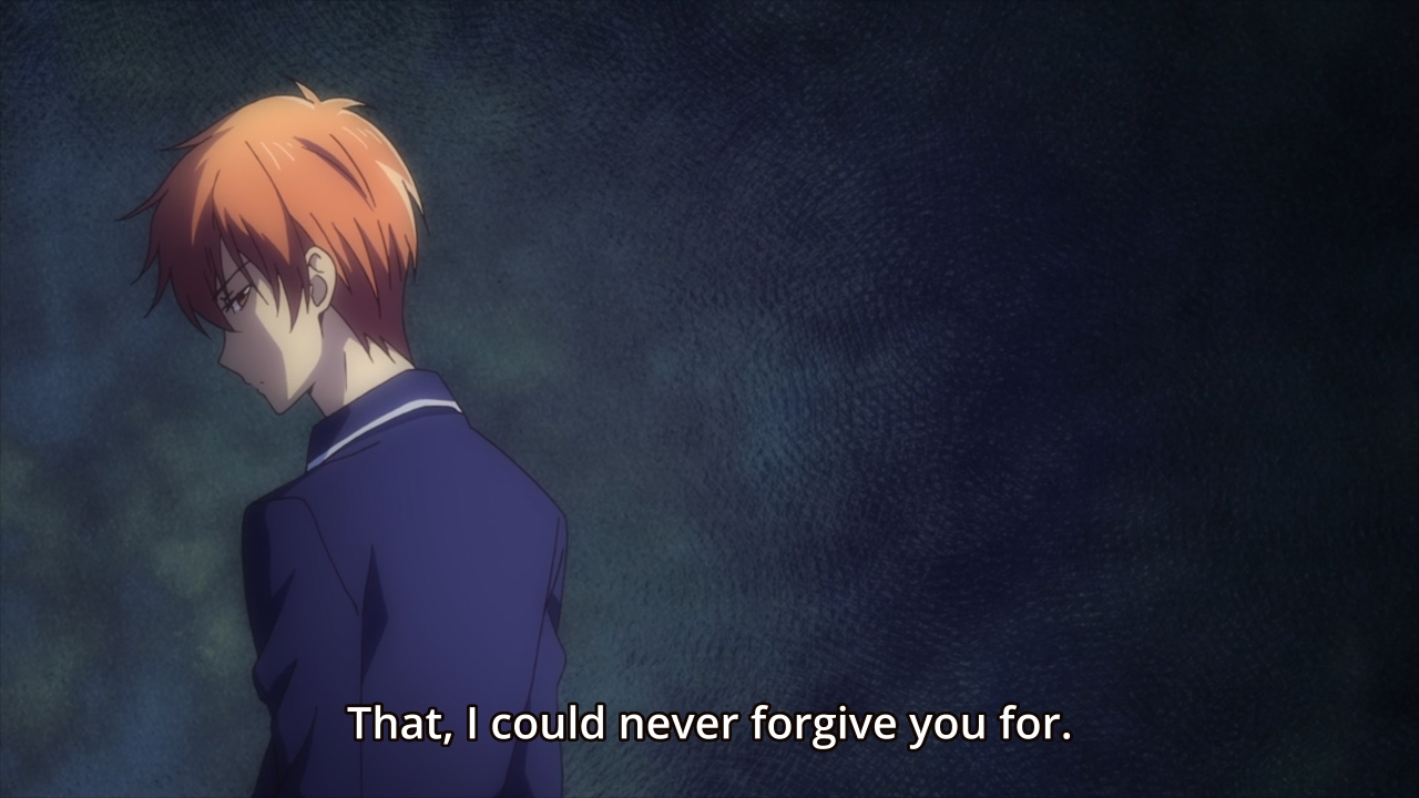 — Oddly enough, Yuki tells Tohru not to worry about Kyo, because “[h]e won’t accept.” It almost feels like he accepts her feelings for Kyo. And when the cat tells Tohru that the confession is none of her business, the rat lashes out. Sure, I guess you could say he’s more concerned about protecting Tohru than winning her for himself.