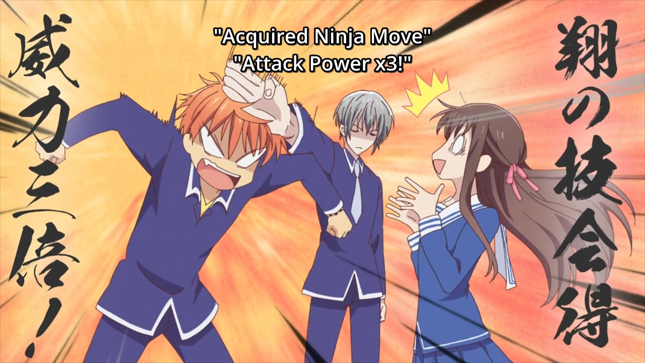 — The vice prez joking suggests that he might like Tohru (he reveals later that he actually has a girlfriend whom we have yet to meet). Yuki tries to be all cool and elegant about it at first, but his true feelings eventually get the better of him. Since he thinks Kyo and Kakeru are similar in one aspect (i.e. their ability to make friends), Yuki projects his worries about the former onto the latter. Again, it sure seems as though he’s already conceding Tohru to the cat. Plus, the easy solution here is to just have a calm and collected conversation with Kyo, but they can’t go a second without bickering like idiots.