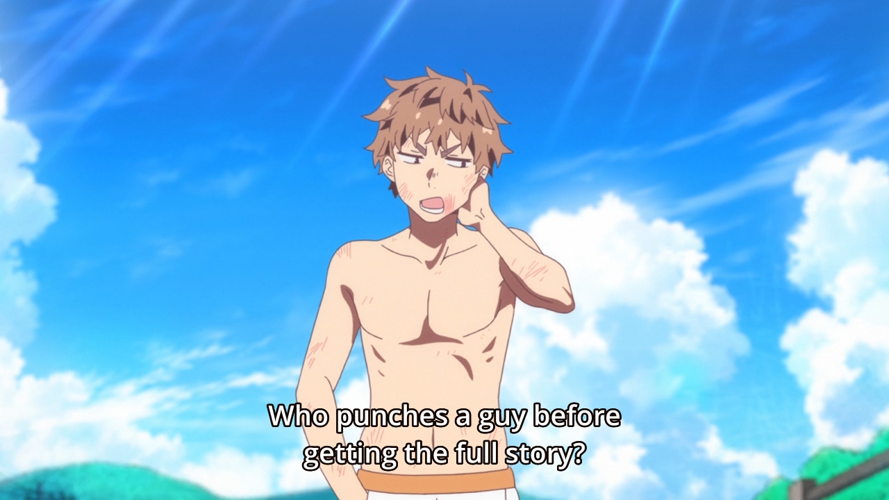 — Chizuru isn’t mad or anything either. You could say that she’s the consummate professional. But like I’ve observed in previous episodes, she seems to have a soft spot for helpless losers like Kazuya. Who knows? Maybe guys like him just trigger her maternal instinct, ’cause she’s now calling him bold and manly. Really? Announcing a break-up in front of everybody when it isn’t their business? Punching your best friend even though you’ve been deceiving him this entire time? Sobbing pathetically over the dissolution of a one-month relationship? That’s manly to Chizuru? Well, no wonder she’s the main haremette in this stupid show.