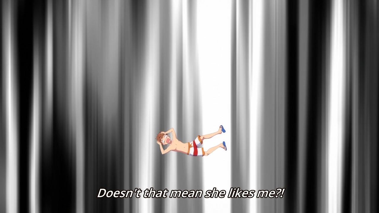 — Meanwhile, Chizuru is feeling dizzy and nauseous, so she probably wanders outside to get some fresh air. Her mistake is getting too close to the railing. Right on cue, the boat encounters some choppy waters, so just like that, the girl goes overboard. Naturally, Kazuya jumps in after her.