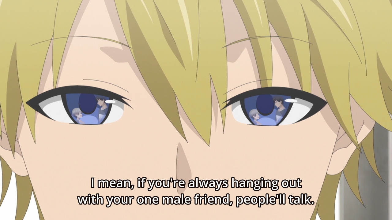 — Oddly enough, Hana tells Shinichi that if he hangs out with Itsuhito too much, people will gossip about the two young men. Does she not realize that people might gossip about them as well? Or does she just assume that everyone would simply brush it off? Sure, Hana thinks that Shinichi would never make a move, but that has no bearing on what outsiders think.