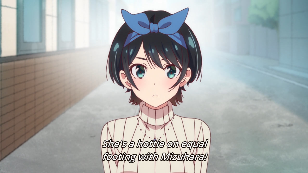 — Well, guess what! She just so happens to be the nerdy friend’s girlfriend! Her name is Ruka, and it’s obvious to the viewers that she’s a rental girlfriend much like Chizuru, but Kazuya doesn’t know any better. Hell, he’s too busy ogling her in front of Chizuru.