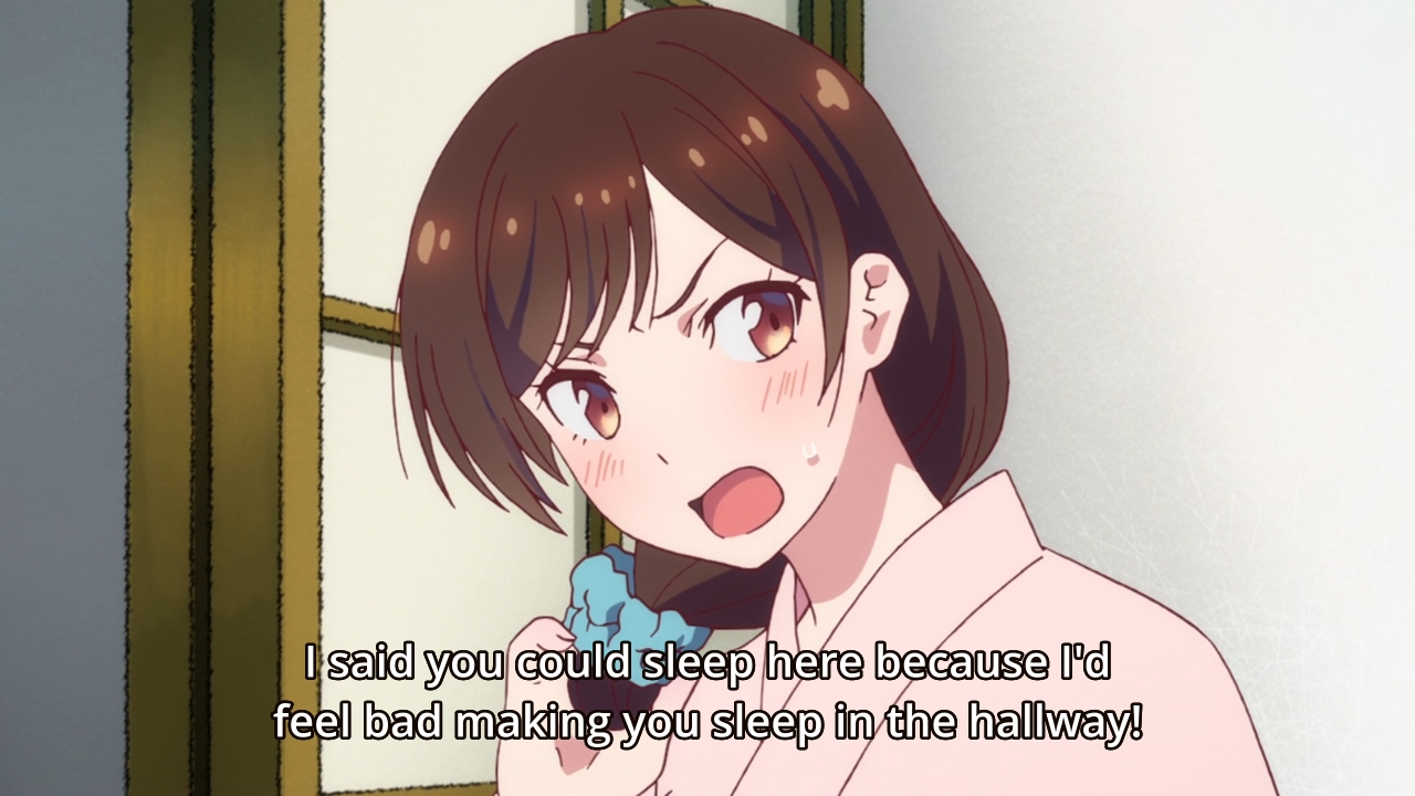 — When we last left off, Chizuru offered to let Kazuya sleep in the same room as her, so when this episode begins, he’s already reading too much into the situation. In fact, some of his conclusions are downright gross. Not surprisingly, the simplest explanation is often the correct one.