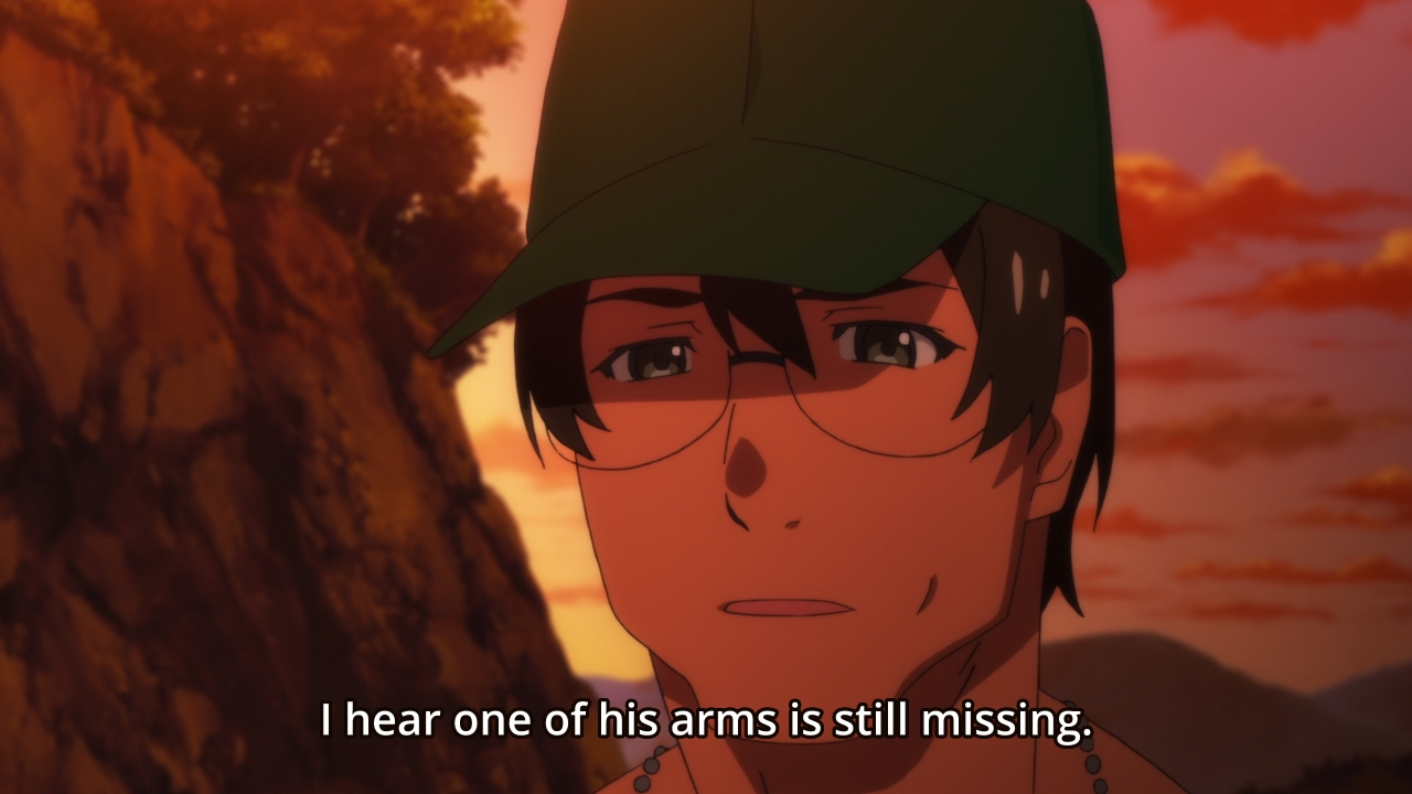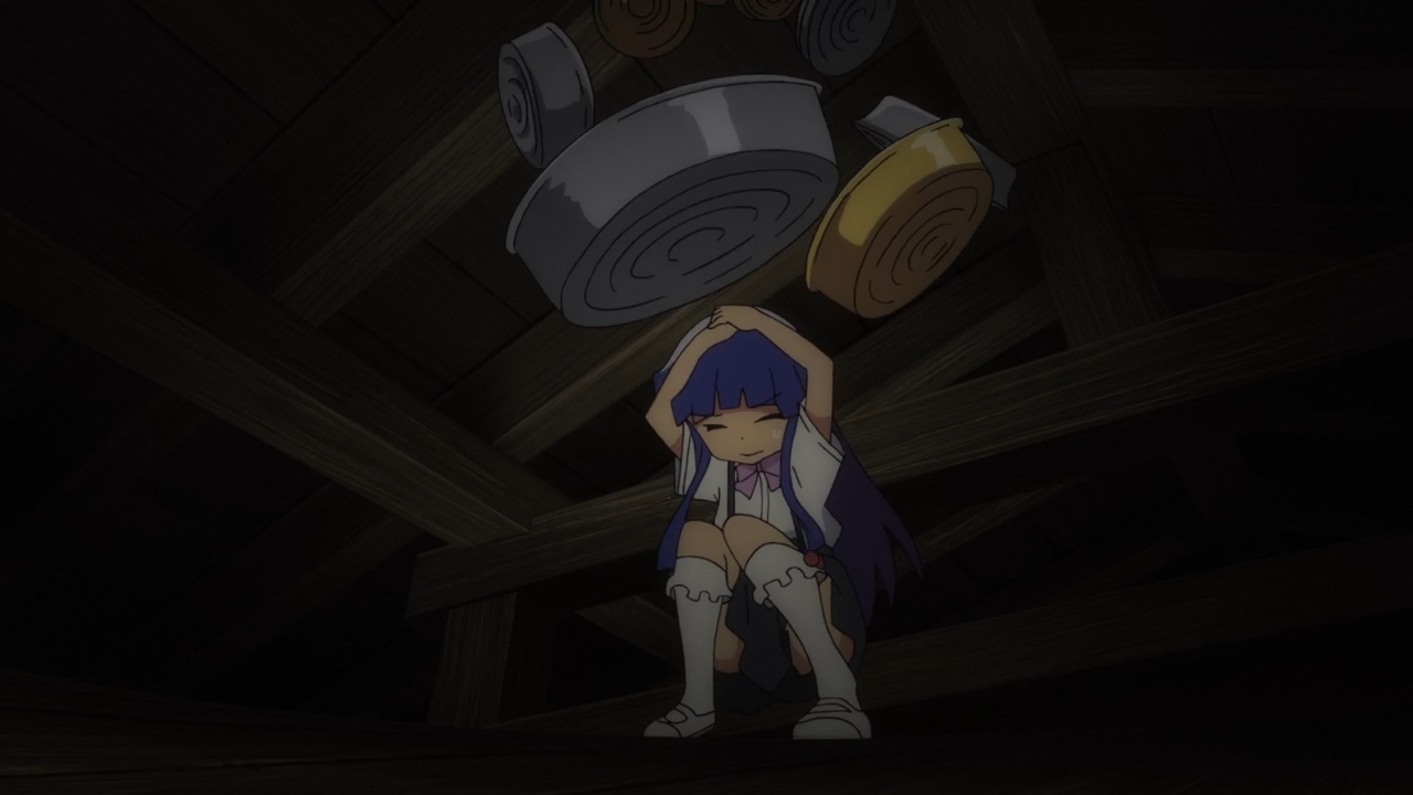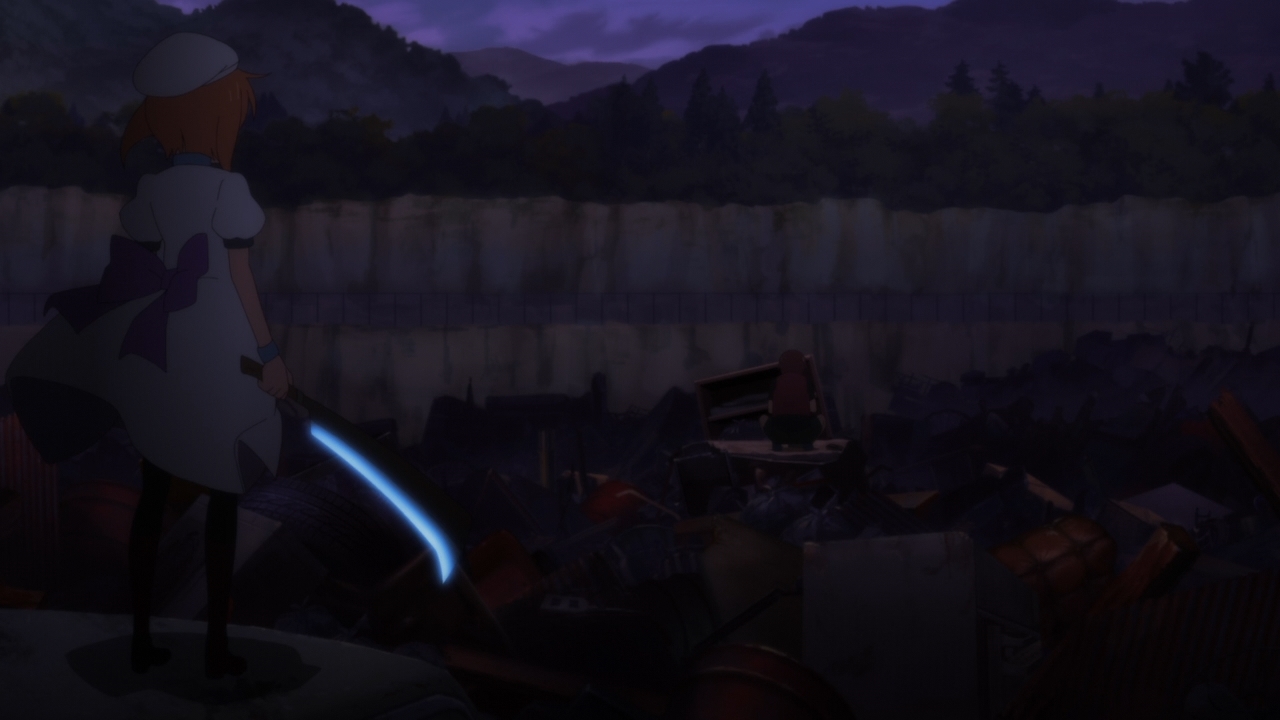 So in 23 minutes, there are only a handful of creepy scenes. Together, they might amount to maybe a minute or two of runtime. Some guy randomly tells Keiichi that something gruesome happened a long time ago. And when our hero tries to ask Rena about it, her entire personality turns dark for just a split second. Hoo boy, now that’s the gap moe to die for! Then right as the episode is about to come to an end, it looks like Rena might have a present for her dear friend. If I pretend for a second that I don’t know anything about what happens later — and to be fair, I’ve largely forgotten a lot of the story — is this enough to draw me in? Ehhhhhhh, probably not. Again, I can’t help but think back to my experience with Muv-Luv. If people hadn’t hyped up Alternative to hell and back — if I hadn’t already known that the series would turn into a battle for life and death against a mysterious alien life-form — I would have NEVER finished Extra. Never.