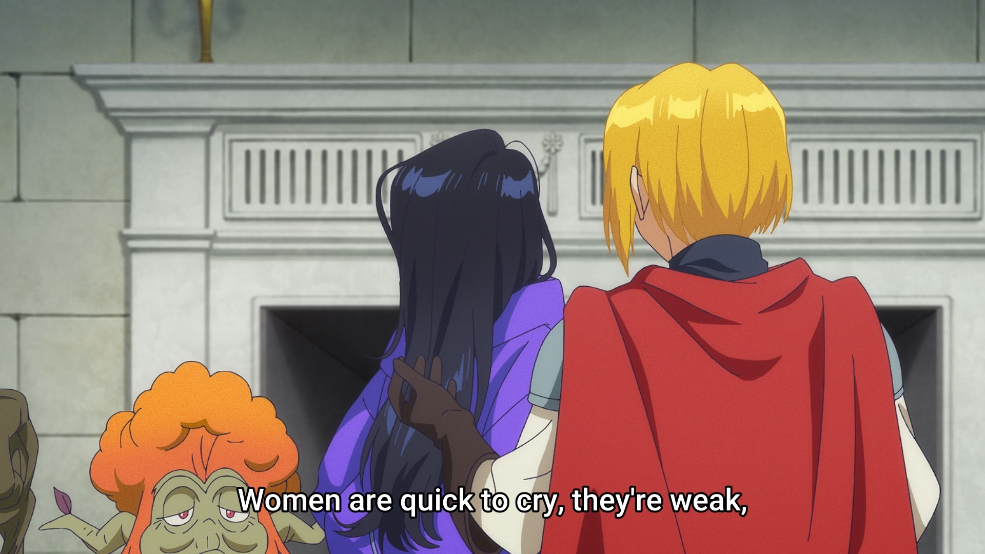 But if this isekai world is faithful to that childhood anime of “yore,” where are these layers even coming from? Natsuko often remarks that a lot of the surprising details about these characters and the world around them cannot be found in the “reference sheets.” She makes it sound like the all-knowing bible of her favorite anime. Well, maybe our hardcore fan isn’t as knowledgeable as she thinks she is. Maybe there are interviews with details that Natsuko has never seen or read before. The most damning thing about Luke so far is that strange outburst of misogyny in the second episode. He initially rejects the idea of recruiting Natsuko into the Nine Soldiers simply due to her gender. His excuses are nothing women haven’t heard before, so I won’t bother listing them. The point is, maybe this is who he was always intended to be, but his creator can’t exactly go on interviews or write in the reference sheets that, yeah, this guy is a douchebag who has kinda sketchy ideas about women. You could argue that Luke’s a dumbass who thinks misogyny is the best way to reject Natsuko, but even if you’re trolling, why do those bigoted thoughts come out so naturally? But I digress; the original question is about the hidden depths to these characters and from where they arise.