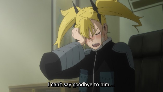 At one point in the episode, a defeated Kafka is in tears as he does the classic move of staring up into the sky while stewing in a mixture of despair and self-loathing. He then sputters to a long gone No. 9, “Don’t you dare say that! Not while you’re wearing his face!” Again, on paper, that reads like an emotional line. But it sounds hollow coming out of his mouth, because I don’t feel any strong connection between him and Isao. Like c’mon, you haven’t adequately established that in just a handful of episodes. As a result, Kafka’s words fall flat. That’s the whole problem with this anime. If you step back and squint, and everything should work; the construction of this anime is theoretically sound. But the show is actually lesser than the sum of its parts. There’s no heart. Flat characters, unimaginative monster designs, slipshod pacing, so on and so forth.