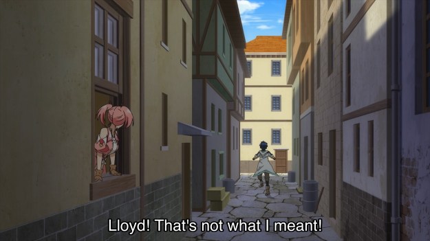 This episode epitomizes why I dislike characters like Lloyd. When Lina, the tank from his former party, insists over and over that he was the reason behind their success, he whines on and on about how weak he is. “Nuh uh, I was kicked out ’cause I wasn’t good enough.” This is after weeks and weeks of his current party try to tell him how useful he’s been to them, so there has been no growth whatsoever. Then when the people of Ishtar try to praise him for saving the city, he books it. He literally runs away in fear. Afterwards, he has the gall to cry, “All I did was cast support magic!”