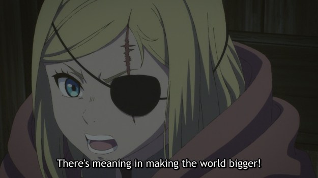 I don’t personally buy Alicia’s argument that establishing and training the thirteen heroes wasn’t a pointless venture. She’s not wrong in a broad sense. Yes, we need to expand world and see what’s beyond the horizon. But what are the costs? It’s similar to the space exploration debate that we have right now. I absolutely want to explore the “heavens.” After all, I grew up wanting to be an astronomer. I hate the fact that I’ll likely never see mankind even get as far as stepping foot on Mars in my lifetime. But I also know that there are bigger problems to solve, and I can’t help but wonder how many people could’ve been saved if resources hadn’t been devoted to the thirteen heroes and their ultimately fruitless crusade. Did they honestly think they had a chance? There’s a reason we don’t just blindly send manned missions to Mars; at our current level of technology, it’s guaranteed to fail. We’d be dooming those astronauts for no logical reason. So again, did the thirteen heroes really think they could’ve succeeded against Clevatess? What else could we have accomplished if just some of that money had gone into something else? Something more practical and more relevant to the day to day lives of the king’s subjects? We’ll never know, because this show ultimately isn’t about governance. But Alicia’s own honeyed words doesn’t come close to settling this debate. But they’re good enough to sway the villagers back onto her side, which is frankly a bit sad and hilarious. These poor people are just ping-ponging back and forth.