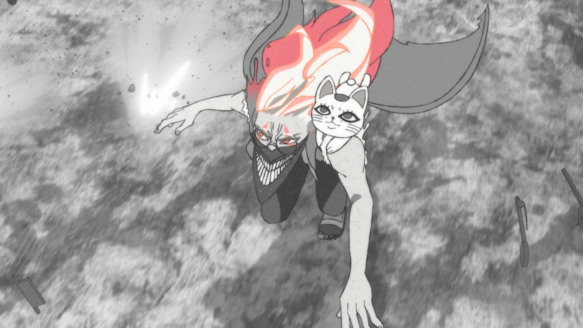 • The way the show utilizes color has always been fun. Once Okarun decisively wins the upper hand, everything is saturated in red. Similarly, at the end of the episode, Evil Eye’s color clashes directly with Okarun’s. It’s a fun visual quirk that sets Dandadan apart from its ilk.