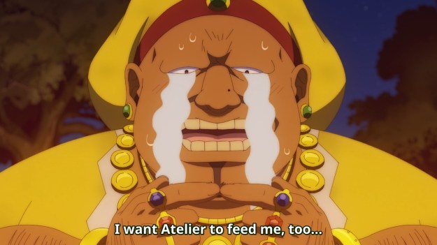 I didn’t expect this week’s episode to open with a visit to the onsen. I know we all need a vacation from time to time, but it’s hard not to be cynical when an anime takes a trip to one of the primary locations for shameless fanservice. What’s next? Are we going to open a restaurant on the beach? More importantly, outside of Dennis, everyone else in the cast is simply too young, and as such, these slow panning shots are very uncomfortable to watch. Welp, prepare yourself for tired-ass tropes like boob envy. Atelier, a goddamn child, ends up being disappointed that — wait for it — she looks like a child. Anime is too much sometimes, man. We also get other weird bullshit like Polvo being jealous over Atelier feeding Dennis. Why? Who wants this?