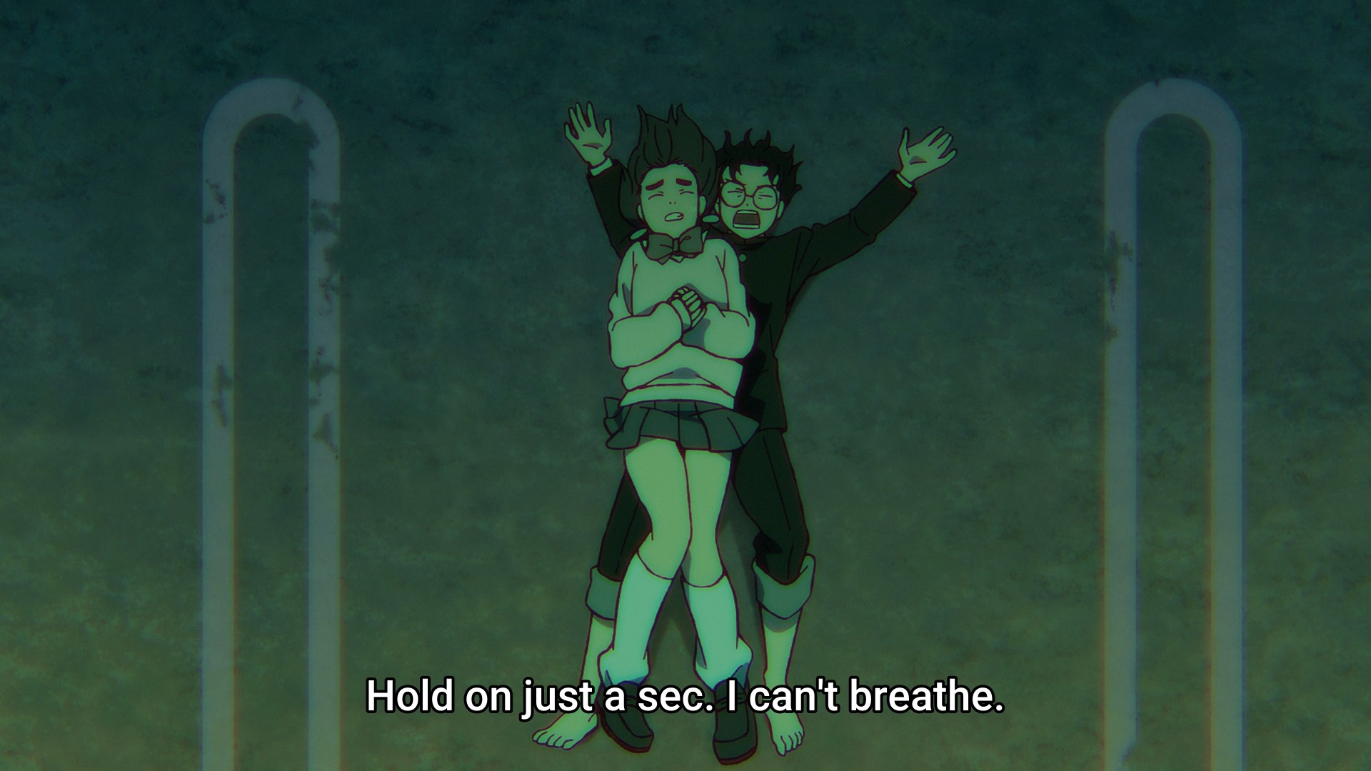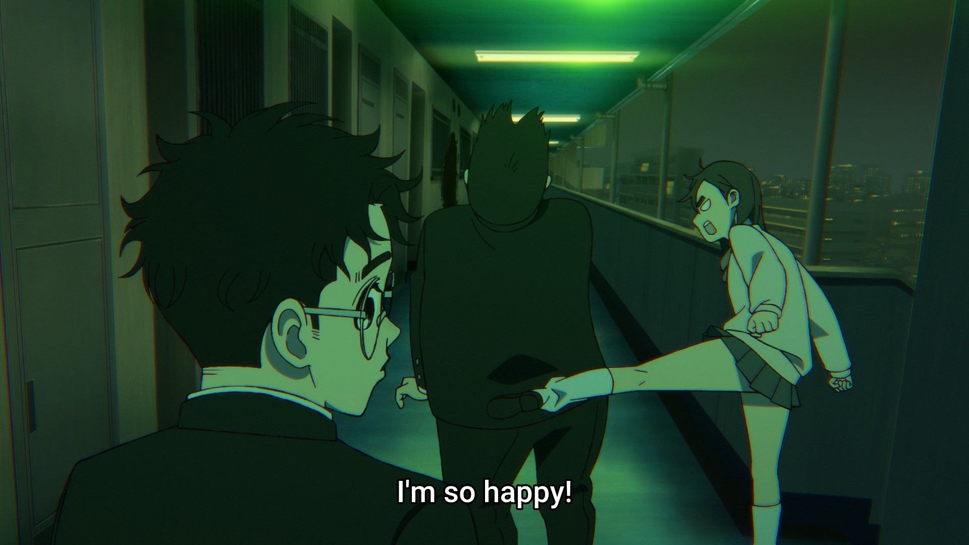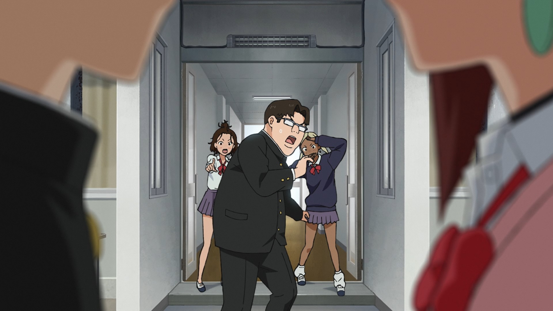 I don’t think the episode actually gives us the new kid’s name. If it does, I missed it (on rewatching the episode, he drops his name during the “ten gallon wiener” scene). But it doesn’t matter, because the internet is happy to spoil it for us. Going into the second season, everyone was hyped for the upcoming battles and the small but adorable moments between Momo and Okarun. But at the same time, people just could not shut up about Kinta this, Kinta that. For two whole months, I had no idea who they were talking about. Finally, we get to meet the guy properly and not just in the OP. To start, Science Saru takes us on a bit of a field trip — a field trip to the past, that is. We time travel all the way back to the fifth overall episode of the series, because that’s how long Kinta has been spying on Okarun. Son, are you okay? Clearly not as he was utterly gobsmacked to see someone like Momo even associate with Okarun. But seriously, this is actually a really clever way to introduce this character, and you even get to give your animators a break by reusing animation from that episode. But as the scene kept rolling, I eventually got to the point where I couldn’t help but think, “Alright, you made your point.” I mean, hell, we even get the accidental kiss scene again! Bro was mere feet away when it happened; Kinta was so invisible back then, nobody noticed him both standing there and eventually slipping away.